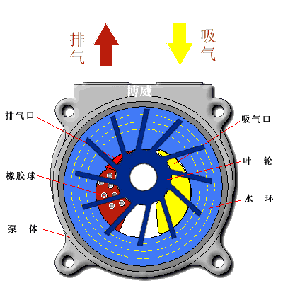 所謂水環(huán)泵就是用水作為液環(huán)的液環(huán)泵,用水作液環(huán)有很多優(yōu)點(diǎn),如價(jià)廉、易得、不會(huì)污染環(huán)境等。但也有一個(gè)很大缺點(diǎn),由于水的飽和蒸汽壓高,使得水環(huán)泵的吸入壓力也高。這時(shí)如改用飽和蒸汽壓低的液體作為液環(huán),則可提高泵的極限真空度。如果某機(jī)組中羅茨泵最大允許的排氣壓力為10Torr,則用水作液環(huán)時(shí)還須加大氣泵才能作為該羅茨泵的前級(jí)泵,若改用礦物油作液環(huán)則不加大氣泵即可作為前級(jí)泵,這樣可以簡化裝置。